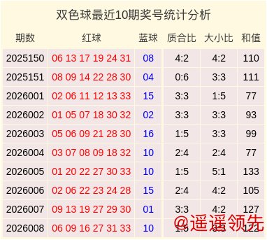 双色球2026008期开奖星空体育官网,本期奖号:红球06、09、16、27、31、33,蓝球10。其中红球奖号质合比为1:5,大小比为3:3,和值为122。