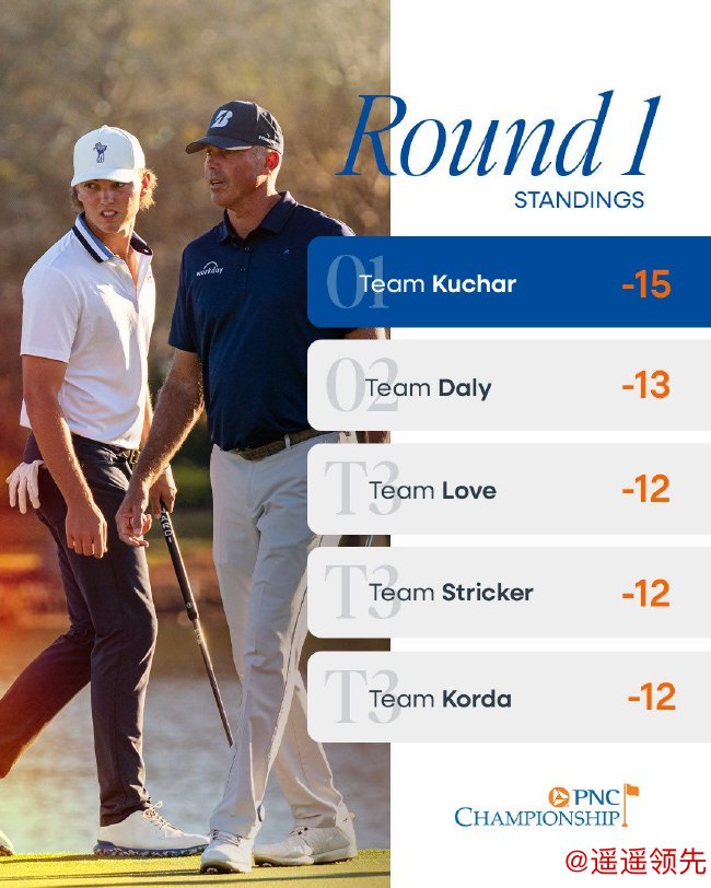 北京时间12月21日,周六的PNC锦标赛风和日丽,马特-库查尔(Matt Kuchar)与即将升入大学的儿子默契配合,在最佳球位赛中仅3个洞未抓鸟,最终交出惊人的57杆,低于标准杆15杆,领先约翰-达利和他的大学生儿子2杆。当日赛事中,两位"球二代"可谓扛起了大梁。