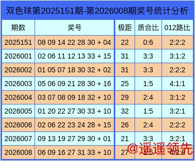 上期回顾:双色球第2026008期回顾:红球06、09、16、27、31、33 + 蓝球10。
