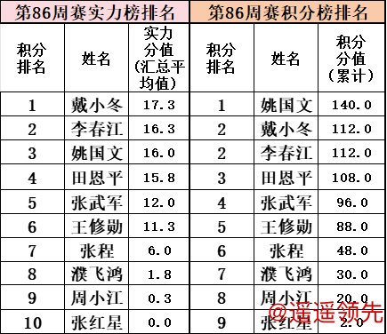第86场周赛实力榜