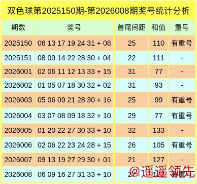 上期红球和值为122,开出2枚重号09,27,无连号,首尾间距为27。